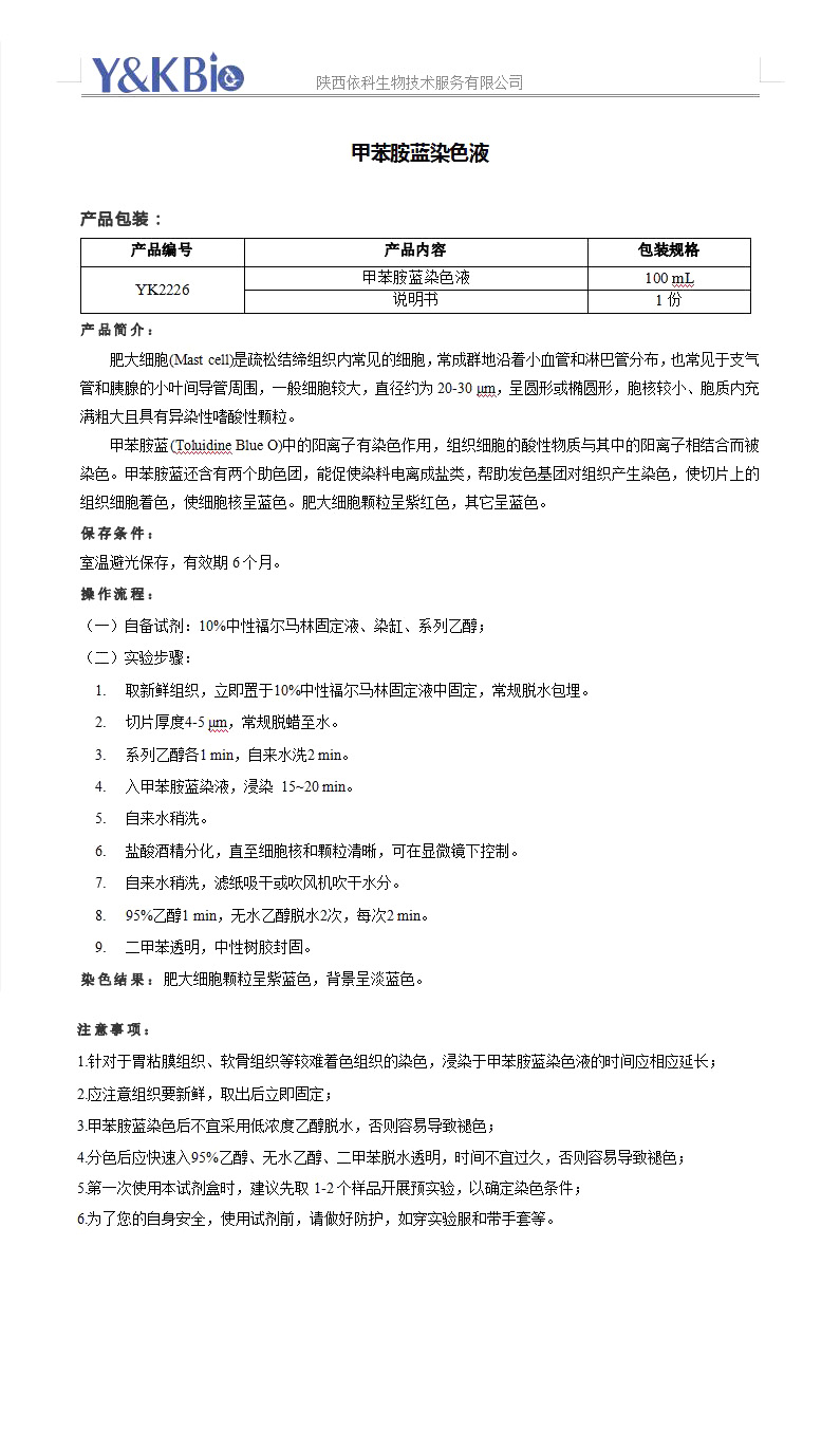 云南甲苯胺蓝染色