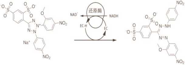 图 1 WST-8和WST-8 formazan的结构式 图2 CCK-8的原理图