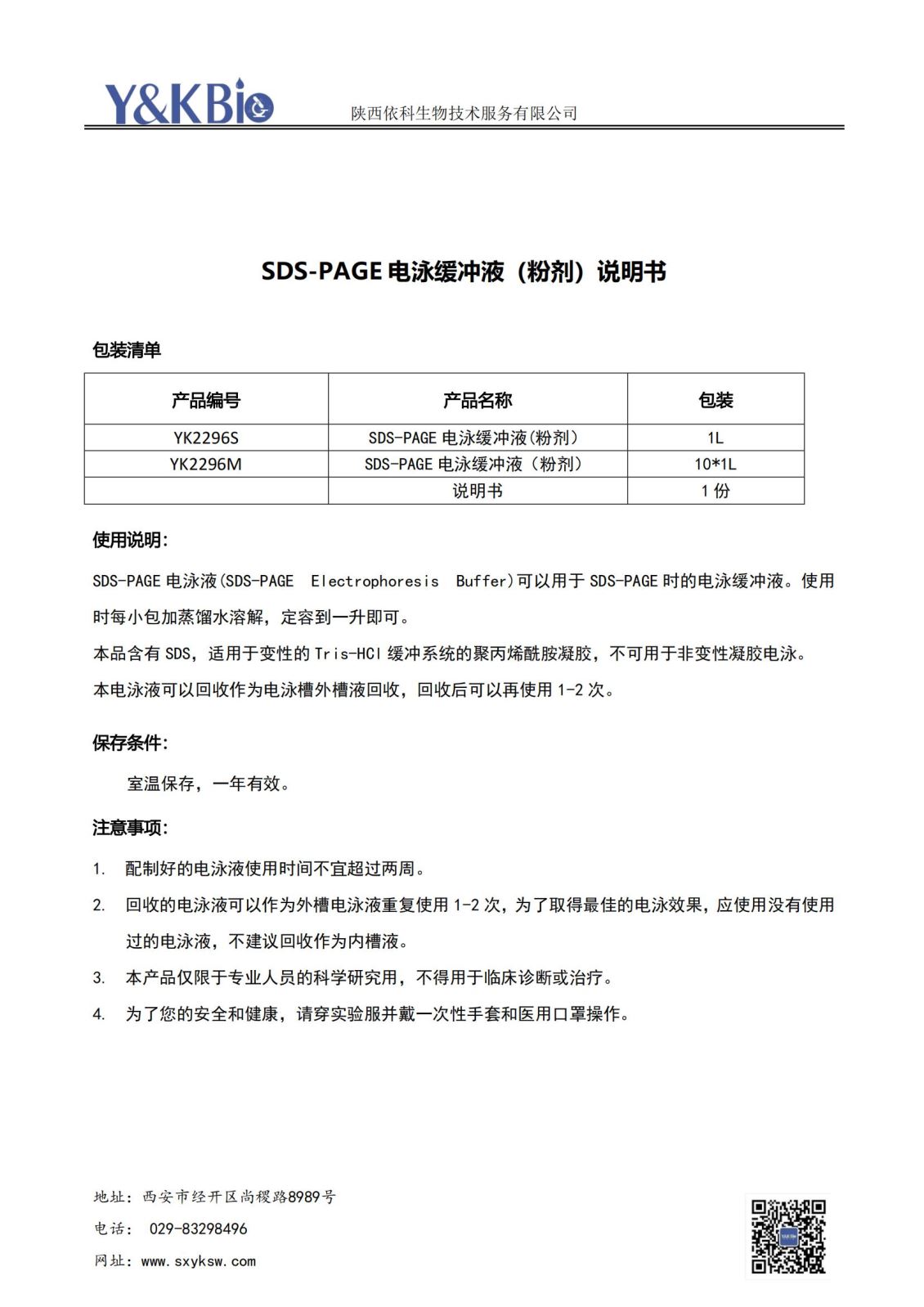 云南SDS-PAGE电泳缓冲液(粉剂)