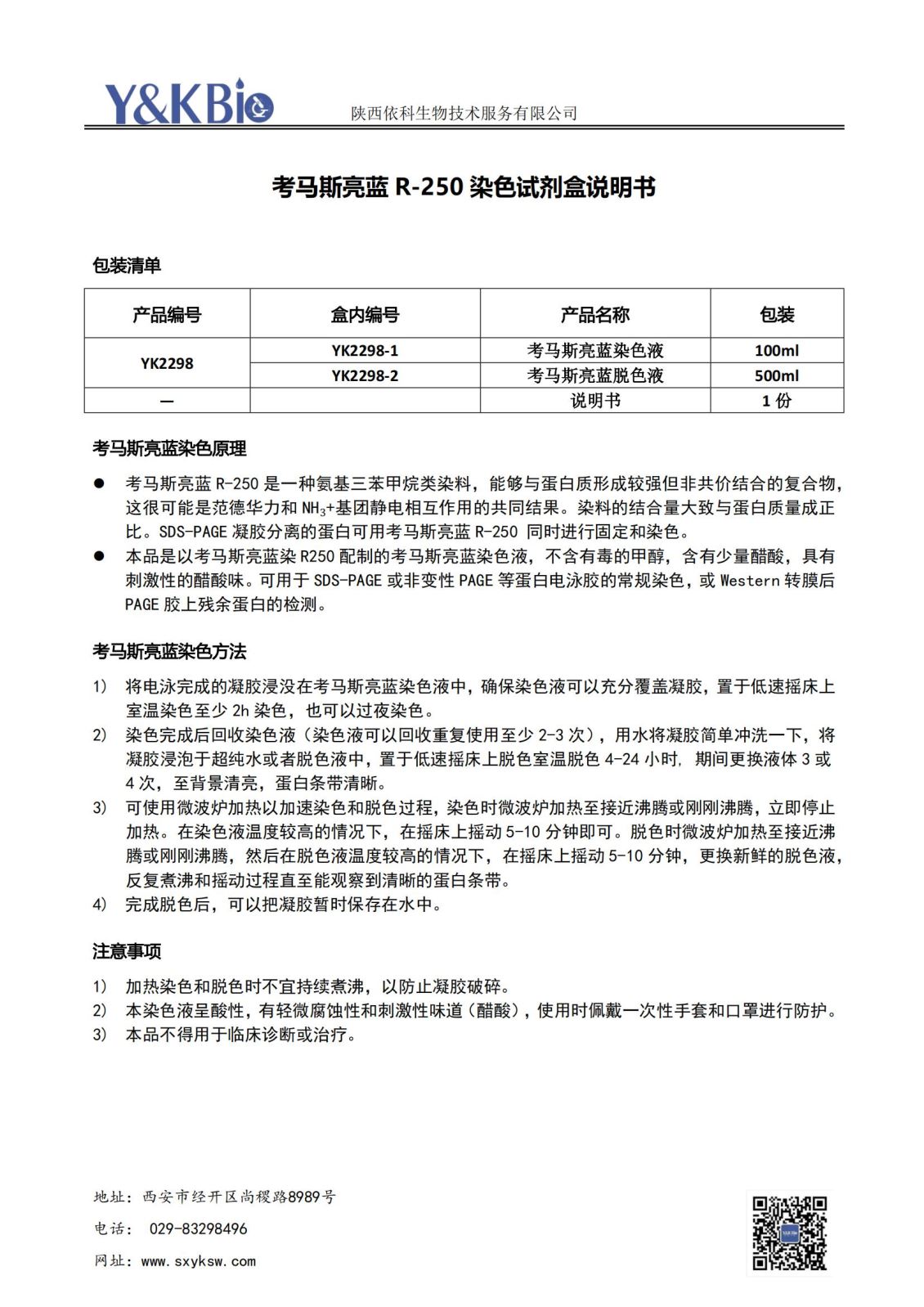 云南考马斯亮蓝染色试剂盒